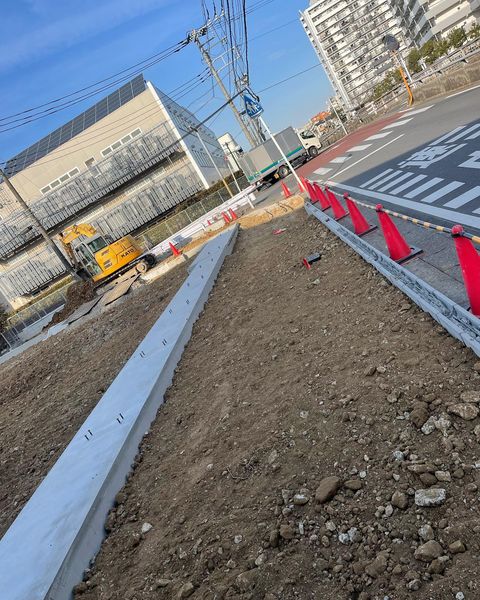 松戸市の現場にて埋め戻し工事、先行外構工事が終了致しました。