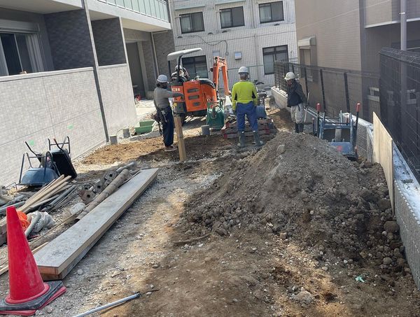 いつもありがとうございます。西船橋駅前にてマンションの外構工事を施行させていただいております。